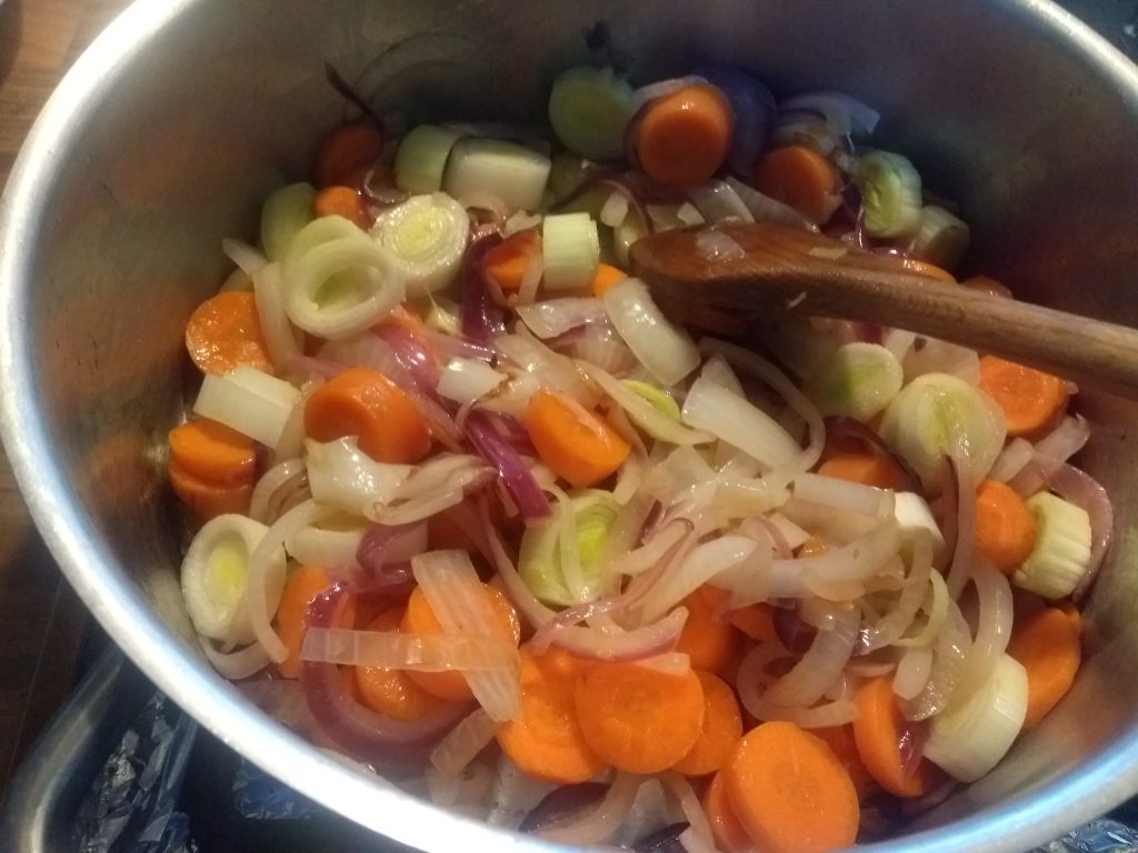 Die Grundlage bildet sanft angeschmortes Gemüse, das beim Köcheln seinen Geschmack