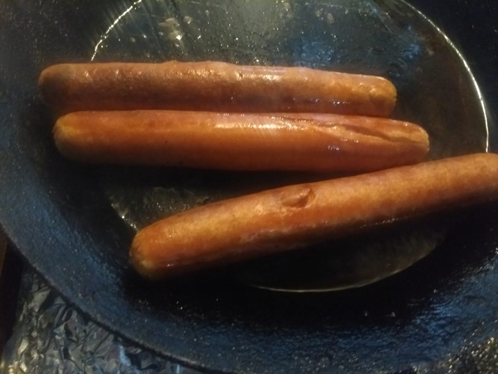 – Geflügelwürste oder Wiener in einer Pfanne anbraten, bis sie eine leichte Bräunung bekommen.