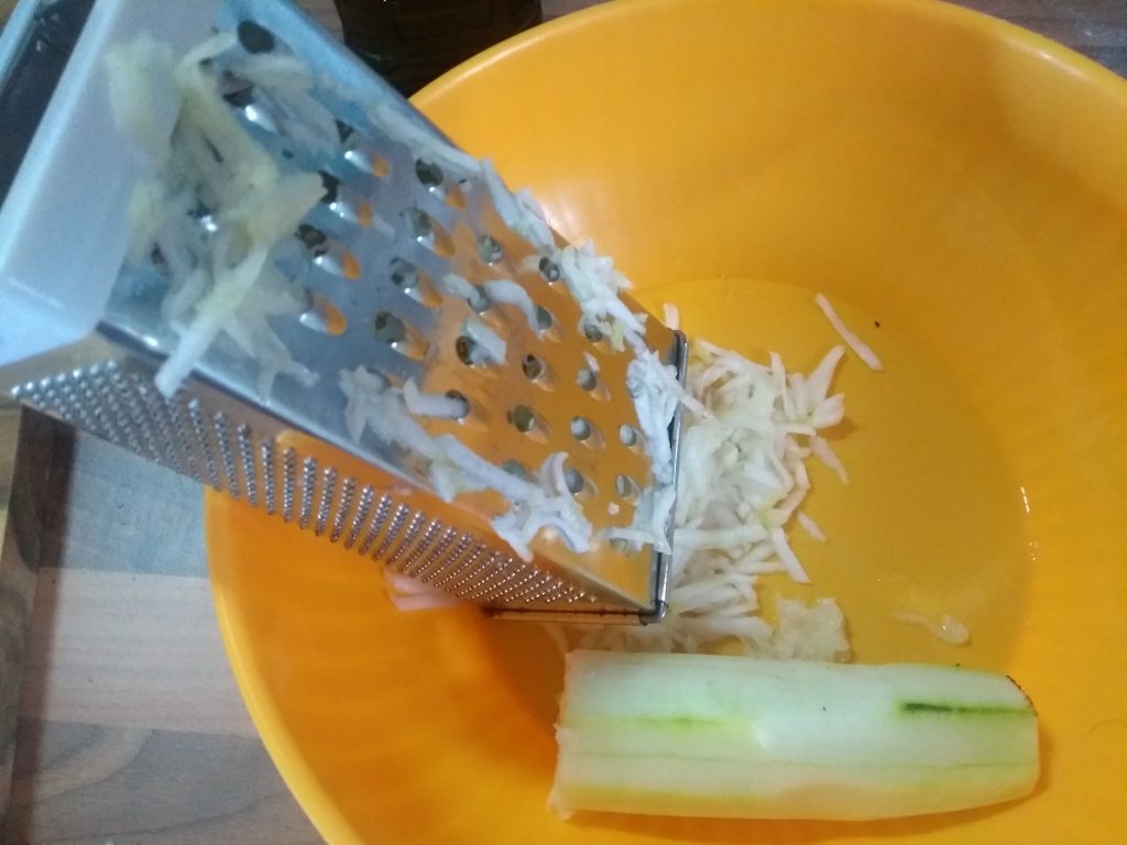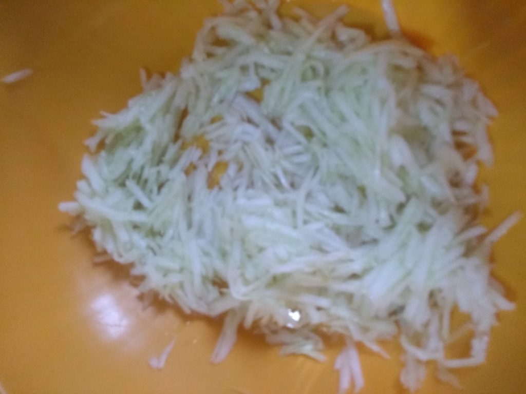 1 Gurke (ca. 300 g, geschält und gerieben)